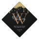 Modern chic black and gold glitter drips script initial monogram graduation cap topper. Designed by Thisisnotme©