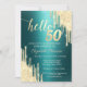Gold Glitter Drips Green Metallic 50th Birthday Invitation