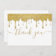 Gold Glitter Drips Modern Elegant Script Thank You Card