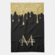 Gold Glitter Drips Monogram Elegant Girly Script Kitchen Towel