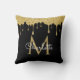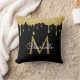 Gold Glitter Drips Monogram Elegant Script Black Throw Pillow
