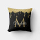Chic black and gold glitter drips monogram throw pillow. Designed by Thisisnotme©
