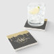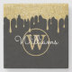 Gold Glitter Drips Monogram Script Name Black Stone Coaster