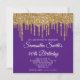 Gold Glitter Drips Royal Purple 40th Birthday Invitation