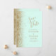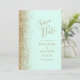 Gold Glitter Edge Mint Green Save the Date Announcement