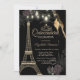 Gold Glitter Eiffel Tower Black Roses Quinceañera Invitation