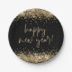Gold Glitter Elegant Script Happy New Year Black Paper Plates