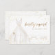 Elegant RSVP cards feature watercolor white wedding dress with sparkle faux gold glitter details.
