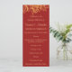 An elegant gold, floral wedding program with a bouquet of gold flowers and leaves at the top on a red base. All of the details on both sides of the card can be easily personalized to suit. The reverse features a single gold bouquet at the very bottom. This stylish and contemporary wedding program is part of a complete matching wedding suite, which you can see in full here: https://www.zazzle.com/collections/gold_glitter_floral_sparkles_red_wedding-119325129141873468