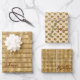 Add a shiny touch under your Christmas tree with this custom set of matching gold glitter pattern wrapping paper sheets. Sheet set has background patterns of faux golden glitter and foil stripes, hearts, and checkered squares. There are also areas for an optional monogrammed family last name or other text.