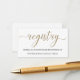 Simple elegance. Beautiful calligraphy accented with a faux gold glitter effect. Using a business card format easily and efficiently communicates your gift registry.