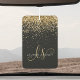 Glam Gold Glitter Elegant Monogram Air Freshener. Easily personalize this trendy chic air freshener design featuring elegant gold sparkling glitter on a black background. The design features your handwritten script monogram with pretty swirls and your name.