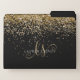Glam Gold Glitter Elegant Monogram File Folder. Easily personalize this trendy chic file folder design featuring elegant gold sparkling glitter on a black background. The design features your handwritten script monogram with pretty swirls and your name.