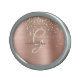 A trendy design of faux brushed rose gold metal background and gold glitter with gold monogram and black script name.