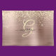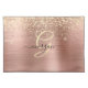 A trendy design of faux brushed rose gold metal background and gold glitter with gold monogram and black script name.