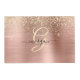 Gold Glitter, Gold Monogram, Black Script Name Placemat