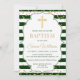 Gold Glitter Green Stripes Boy Baptism Invitation