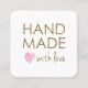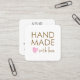 Personalized handmade with love business cards to add to your customer's orders. The front of the gift tag says Handmade with love in a gold glitter design and a little pink watercolor heart. The back has a place for you to add your business logo and name/website. This would be a great touch to your handmade orders for Etsy sellers, local artist and craft businesses and more. Please note there is not actual glitter on this product but a design effect.