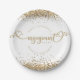 Gold Glitter Heart Script Names Engagement White Paper Plates