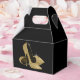 Elegant black and gold glitter high heel shoe favor boxes. You can add text to the front and back of this beautiful black and gold high heel shoe party favor box and choose your background color. This is a printed design with no real glitter.