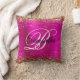 Gold Glitter Hot Pink Foil Fancy Monogram Throw Pillow
