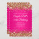 Gold Glitter Hot Pink Monogram 50th Birthday Invitation