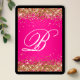 Gold Glitter Hot Pink Monogram 50th Birthday Invitation