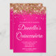 Gold Glitter Hot Pink Ombre Quinceañera Invitation