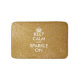 Faux Gold glitter keep calm and sparkle on bath mat. Personalized keep calm and your text non slip bath mat. Create your own funny keep calm and carry on parody rug for chic bathroom. Vintage typography template design with elegant crown. Other Cute keepcalm examples: Keep calm and party on. Keep calm and dance on. Keep calm and sparkle on. Original keepcalmandcarryon gift ideas for men women and kids. Make your own humorous quote for yourself, friends and family, birthday, wedding party etc. Unique and trendy home decor products. Custom background color. Available in small medium and extra large big size. Stylish interior decoration with golden background texture. Shiny sparkly sparkles and glittery glimmers.