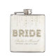 This stylish flask design by The Spotted Olive™ features a soft background with an image of streaming gems coming down from the top and the word "bride" filled with an image of gold glitter. PLEASE NOTE: THIS DESIGN ONLY FEATURES A PRINTED IMAGE OF GLITTER; THERE IS NO PHYSICAL GLITTER USED OR INCLUDED; THERE ARE NO EMBELLISHMENTS. THIS IS A FLAT PRINTED INVITATION. Click the "Customize It" button to go to the design tool where you can change the font, type size, type color, text positioning and more. Copyright 2014-Present | The Spotted Olive™ | All Rights Reserved