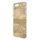 Glitzy iPhone 8 Plus Clearly™ Deflector Case, with graphics of a gold foil and gold glitter looking striped background. Customize to add any text you want.