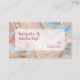 This business card features a stunning opal blush pink, aqua blue, and glamorous gold marble quartz art pattern. Its elegant and eye-catching design is perfect for professionals in the beauty industry, showcasing your style and creativity. With its high-quality print and durable cardstock, this business card is sure to leave a lasting impression on your clients. Stand out from the crowd and make a statement with this stylish and classy business card.