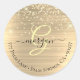 Gold Glitter & Monogram, Black Script Name Address Classic Round Sticker