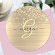 Gold Glitter & Monogram, Black Script Name Classic Round Sticker