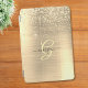 A trendy design of faux brushed gold metal background and gold glitter with gold monogram and black script name.