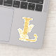 Elegant gold glitter monogram letter L. This monogram glitter letter L initial is a beautiful golden tone of shine and sparkle. Pretty flowers leaves show special occasion and celebration. Modern look sticker can be used on greeting cards, wedding invitations, thank you cards, stationery, gift wrapping and many more.