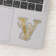 Gold Glitter Monogram Initial V Floral Sticker