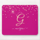 Gold Glitter & Monogram White Script Name, Fuchsia Mouse Pad