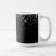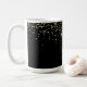 Gold Glitter & Monogram White Script Name on Black Coffee Mug