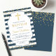 Gold Glitter Navy Blue Boy Baptism Invitation