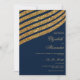 Gold glitter navy blue geometric abstract wedding invitation