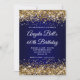 Gold Glitter Navy Blue Ombre 60th Birthday Invitation