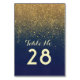 Gold Glitter Navy Wedding Table Number