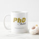 A PhD student mug that puts gold glitter into your academic pursuit. This gold, black, and white design includes a customizable name. Simply customize the name, add this mug to your cart, then sparkle as you get back to that research.