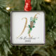 Gold Glitter Pine Cone Holly Christmas Monogram H Metal Ornament