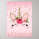 Gold Glitter & Pink Floral Unicorn Trendy Poster