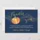 Gold Glitter Pumpkin Navy Blue Photo Baby Shower Thank You Card