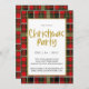 Gold Glitter Red and Green Plaid Christmas Party Invitation