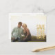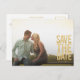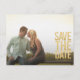 Gorgeous faux gold glitter typography on the front of this designer postcard which you can upload into with your own engagement/save the date photo portrait. Easily and quickly personalize this designer professionally printed save the date postcard here and now by just typing over the example text and adding your own photograph. Elegant, chic, simple and classy gold block letters glitter glitz typography