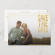 Gorgeous faux gold glitter typography on the front of this designer postcard which you can upload into with your own engagement/save the date photo portrait. Easily and quickly personalize this designer professionally printed save the date postcard here and now by just typing over the example text and adding your own photograph. Elegant, chic, simple and classy gold block letters glitter glitz typography